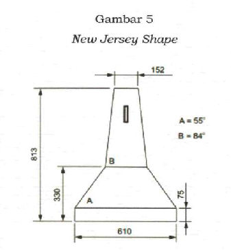 Penempatan Pagar Pengaman kaku jenis New Jersey Shape pada jalan dengan kecepatan rata-rata paling besar 50 km/jam (lima puluh kilometer per jam).