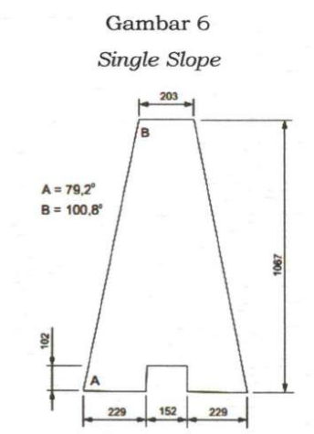 Penempatan Pagar Pengaman kaku jenis Single Slope pada jalan dengan kecepatan rata-rata antara 70 km/jam (tujuh puluh kilometer per jam) sampai dengan 80 km/jam (delapan pulluh kilometer per jam) pada kondisi bahu jalan yang tidak diperkeras.