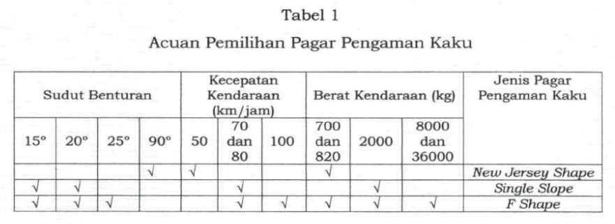 Pagar Pengaman berfungsi untuk melindungi daerah atau bagian jalan yang membahayakan bagi pengguna jalan. Pemilihan jenis Pagar Pengaman dengan mempertimbangkan: