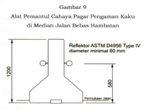 karakteristik lalu lintas. Pagar Pengaman dipasang pada tepi luar badan jalan dengan jarak paling dekat 60 cm (enam puluh sentimeter) dari bahu jalan. Pagar Pengaman dilengkapi dengan tanda dari bahan bersifat reflektif dengan warna dan spesifikasi sesuai dengan patok pengarah lau lintas pada sisi yang sama.