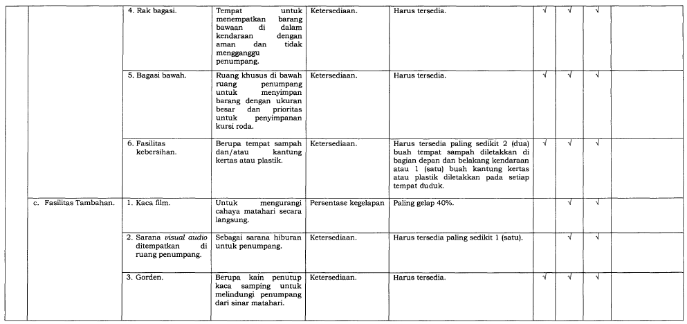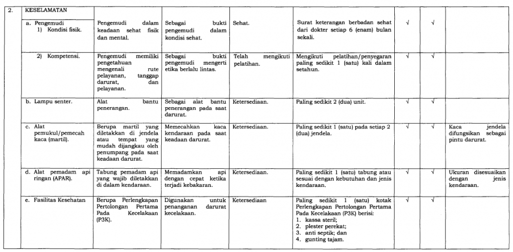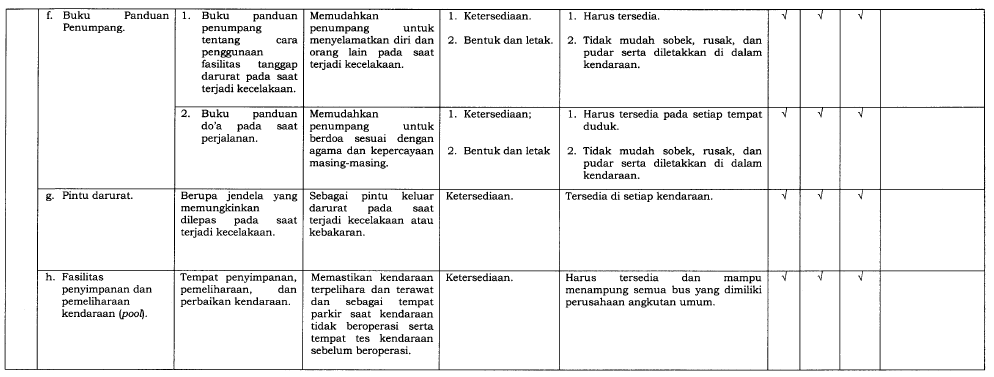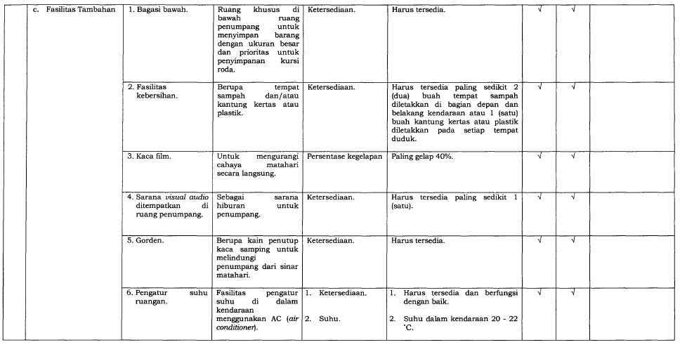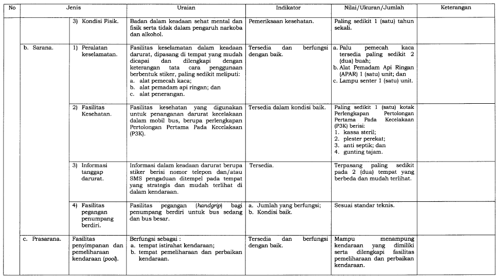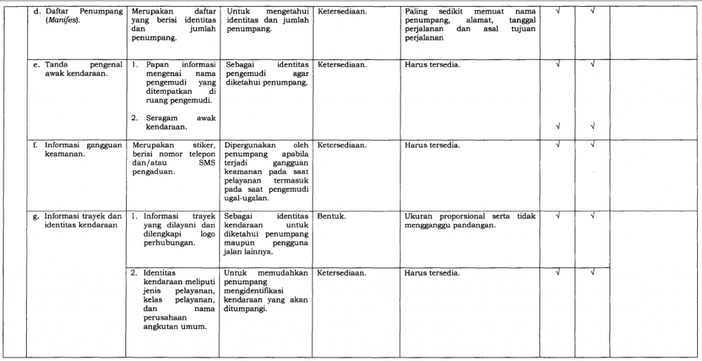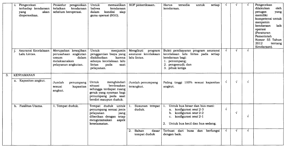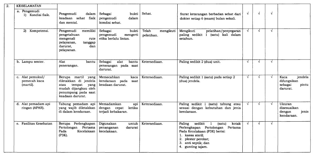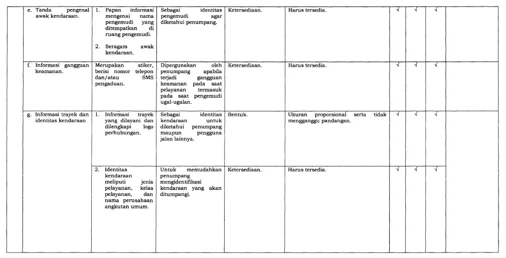 Perusahaan angkutan umum bertanggung jawab memastikan kendaraan mereka memenuhi SPM, termasuk: