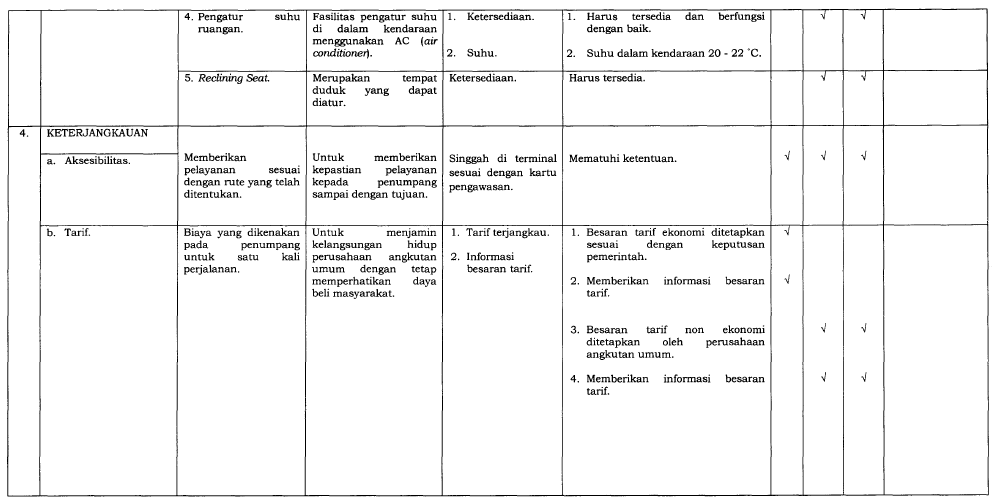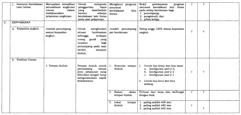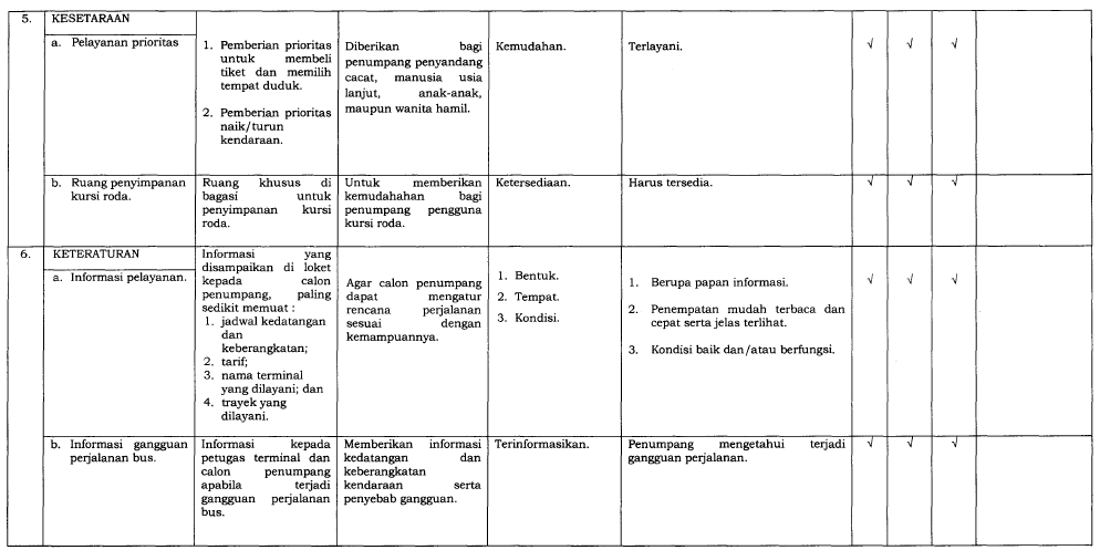 SPM bertujuan untuk memastikan bahwa pengguna angkutan umum mendapatkan layanan yang sesuai standar yang meliputi: