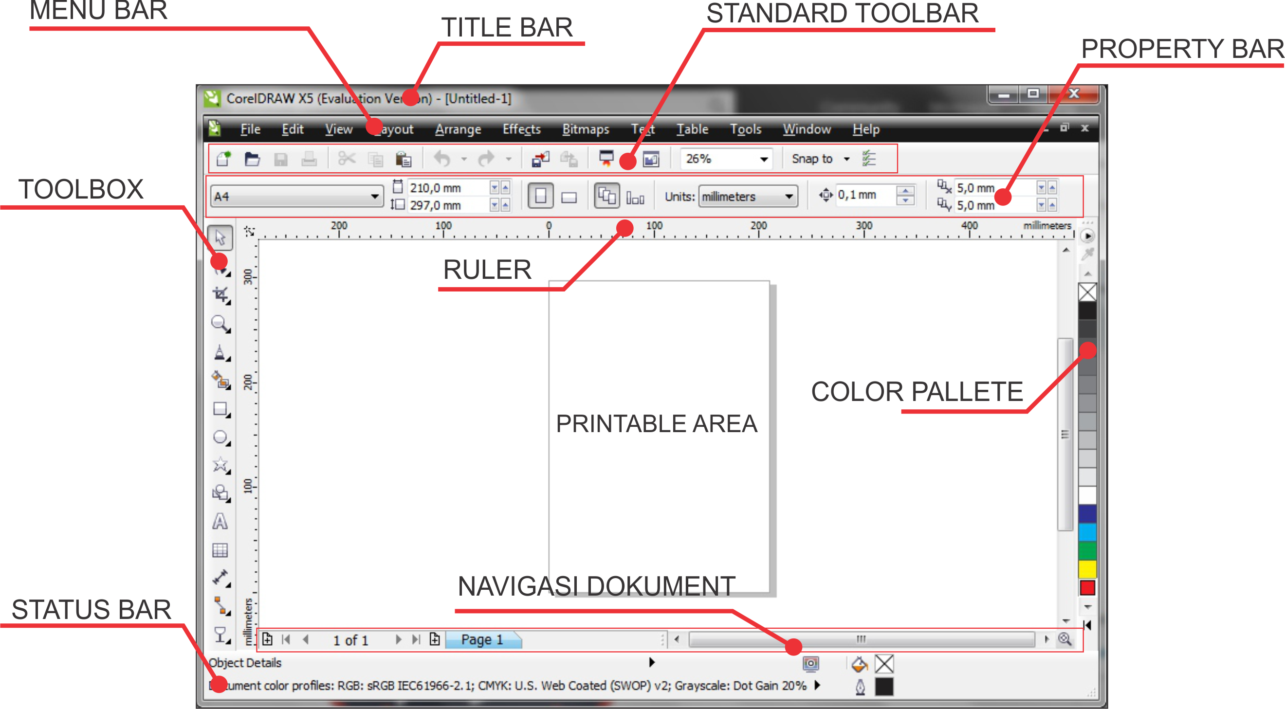 tampilan corel draw interface